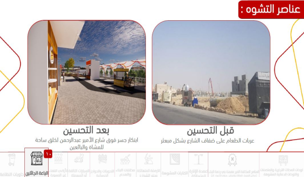 وقدمت مشاريع الطلاب والطالبات الفائزين أفكاراً مستدامه تتكيف مع الظروف البيئية وتستجيب لمتطلبات جودة الحياة، وتعالج التشوه البصري في محور انس بن مالك بمدينة الرياض على طول ١٢كم، كما تضمنت مجموعة من الاقتراحات والسياسات التطويرية التي تدعم تنويع بدائل النقل وتقدم معالجات تصميمية تتماشى مع طبيعة الموقع والبنية التحتية للمحور.