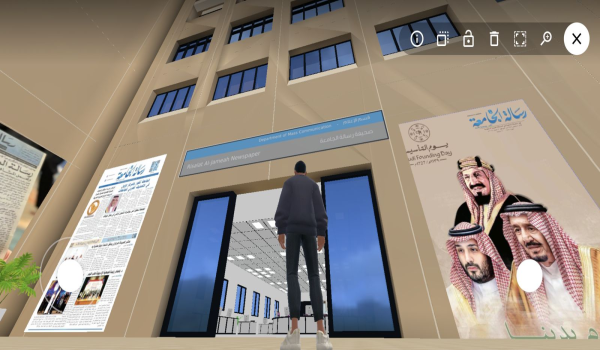 قدمت الأستاذة خديجة مريشد ، والدكتورة ماجدة السويح بقسم الإعلام، بإشراف الدكتور فيصل العقيل رئيس قسم الإعلام مشروعًا افتراضيًا بتقنية الميتافيرس، وباستخدام عدد من أدوات الذكاء الاصطناعي ، يجسد قسم الإعلام كافة تفاصيله ووحداته. و تُظهر المساحة الافتراضية بوابة الجامعة، ودوار الكتاب الذي يعد معلمًا من معالمها المميزة، مرورًا بكلية العلوم الإنسانية والاجتماعية، و من ثم قسم الإعلام بكل تفاصيله.