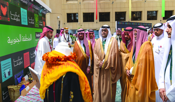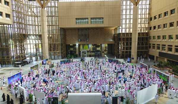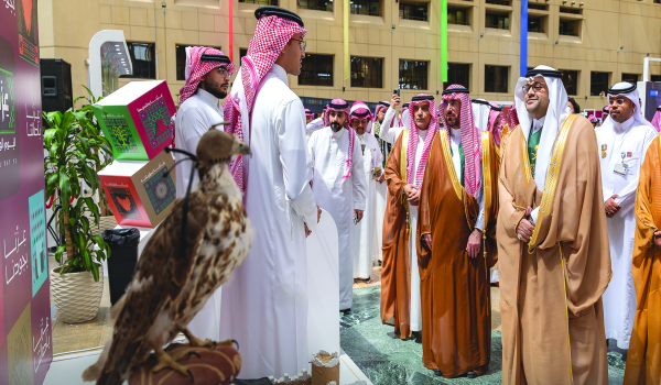 كما افتتح سعادة رئيس الجامعة المُكلَّف المعرض المصاحب في البهو الرئيس، مبتدئًا مع أبناءه طلبة جوالة الجامعة برفع راية التوحيد راية لا إله إلا الله خفاقةً في سماء جامعة الملك سعود، ثم جولة في المعرض الذي ضم أركانًا تمثل الإرث الثقافي والتراث الشعبي لمناطق المملكة الأربع الشمالية والجنوبية الشرقية والغربية والمنطقة الوسطى، من عادات الضيافة الأصيلة وتقديم القهوة السعودية والمأكولات التراثية وبعض الصناعات اليدوية، إضافة إلى عرض مشاريع تنموية تعكس رؤية السعودية 2030. وشارك طلاب الجامعة في تقديم أركانٍ تعريفية عن المشاريع الوطنية الكبرى، كما اشتمل المعرض على ركن فني احتوى على لوحاتٍ لرسوم فنية وصور فوتوغرافية من إنتاج طلبة ومنسوبي الجامعة ضمن مسابقة "عزّنا بطبعنا" ,كما تضمن المعرض أركانًا ترفيهية وتفاعلية ومسابقات وتوزيعات للحضور. واختُتمت الفعالية بأداء العرضة السعودية، بمشاركة منسوبي وطلاب الجامعة، في مشهدٍ جسّد الفخر بالهوية الوطنية والانتماء للموروث الشعبي.