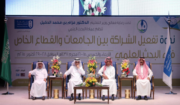 برعاية معالي وزير التعليم الدكتور عزام الدخيل تستضيف الجامعة ممثلة بعمادة البحث العلمي ندوة «تفعيل الشراكة بين الجامعات والقطاع الخاص في البحث العلمي» يومي الأربعاء والخميس المقبلين 15 - 16 محرم 1437هـ الموافق 28 - 29 أكتوبر 2015م، بحضور معالي مدير الجامعة ووكلائها وعمداء الكليات والعمادات وأعضاء هيئة التدريس وممثلي القطاع الخاص.. ومشاركة شخصيات من القطاع الخاص وخبراء عالميين من الجامعات ذات التجارب الناجحة في هذا المجال بالإضافة إلى متحدثين من داخل المملكة.