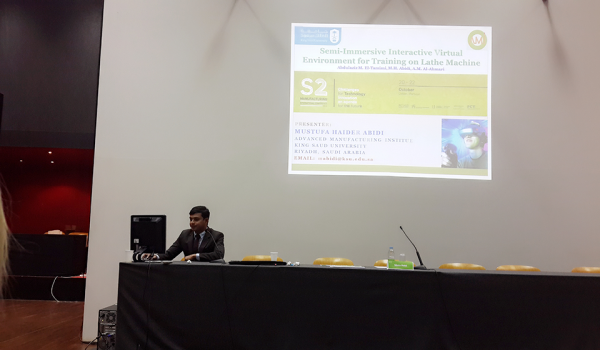 وعرض المهندس العبيدي بحثا بعنوان «Semi-Immersive Interactive Virtual Environment for Training on Lathe Machine» بيئة تفاعلية افتراضية للتدريب على ماكنة الخراطة»، وشارك في هذا البحث أيضا الدكتور عبدالرحمن الأحمري، الدكتور عبدالعزيز التميمي.