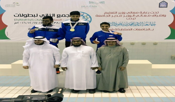 حققت منتخبات الجامعة نتائج إيجابية ومميزة في بطولات التجمع الثاني للاتحاد الرياضي للجامعات السعودية، الذي أقيم على ملاعب ومسبح جامعة الإمام محمد بن سعود الإسلامية خلال الفترة 14-17/3/1438ه وشمل ثلاث منافسات رياضية هي«التنس – السباحة – نهائيات الطائرة».