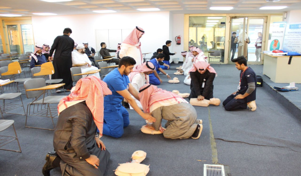 انطلاقاً من أهداف كلية المجتمع في تجسيد الممارسات الدالة على المسؤولية الاجتماعية وأهمية التوعية بموضوع الإسعافات الأولية وكيفية تطبيقها، وبحضور وكيل الكلية للتطوير والجودة الدكتور أسامة الفراج، أقامت وحدة الأنشطة الطلابية بكلية المجتمع مؤخراً وبالتنسيق مع فريق من وحدة تدريب دعم الحياة بكلية الأمير سلطان بن عبدالعزيز للخدمات الطبية الطارئة، دورة تدريبية تعريفية للإسعافات الأولية لطلاب الكلية ومنسوبيها، تم خلالها توعية الحاضرين بأهمية الإسعافات الأولية، وكيفية التعامل مع العمليات الطارئة كالإغماء، والحروق، والغصَّة، وتوقف نبضات القلب. كما قام الحضور بالتطبيق العلمي لكيفية التعامل مع مثل هذه الحالات، بالإضافة إلى توزيع العديد من النشرات التثقيفية والتوعوية عن الإسعافات الأولية على الحضور، وقد أثنى الحضور على هذه الدورة التثقيفية في هذا المجال الصحي المهم للجميع، ولقيت استحساناً وفائدة كبيرة للمشاركين.