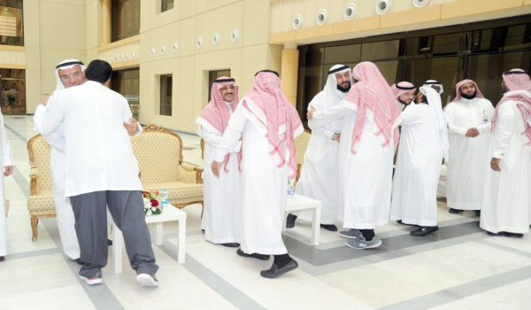 أقامت المدينة الطبية وكلية الطب بجامعة الملك سعود الأحد الماضي حفل المعايدة لمنسوبيها بالبهو الرئيسي بمستشفى الملك خالد الجامعي ومستشفى الملك عبدالعزيز الجامعي. حضر الحفل جمع من موظفي المدينة الطبية الجامعية ومديري الإدارات ورؤساء الأقسام والأطباء.