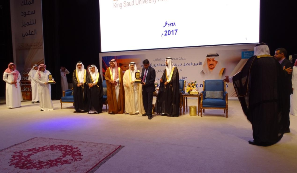 حصد الدكتور مقصود أحمد الباحث والأستاذ المساعد بمعهد الملك عبدالله لتقنية النانو المركز الثاني بالفرع الثاني من جائزة جامعة الملك سعود للتميز العلمي والخاص بجودة البحث العلمي للتخصصات العلمية والهندسية، وذلك خلال الحفل الذي أقيم للجائزة برعاية كريمة من صاحب السمو الملكي الأمير فيصل بن بندر بن عبدالعزيز آل سعود أمير منطقة الرياض، في 29 شعبان 1438هـ الموافق 25 مايو 2017م، وذلك عن أبحاثه المتميزة في مجال تقنية النانو الحيوية والطب النانوي.