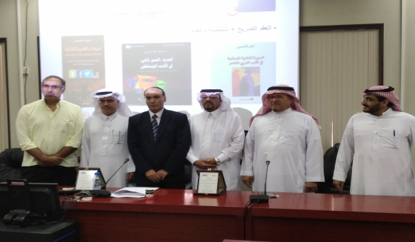 ضمن أنشطتها الثقافية عقدت الندوة العلمية بقسم اللغة العربية بالتعاون مع وحدة السرديات بكلية الآداب مؤخراً ندوة بعنوان «السيرة الذاتية: إشكالات وتساؤلات»، في قاعة قسم اللغة العربية وآدابها كلية الآداب جامعة الملك سعود.