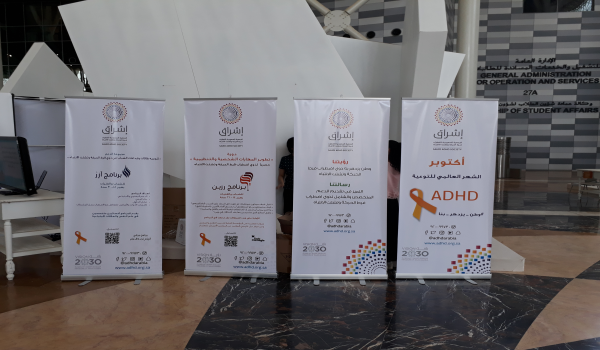 استضافت جامعة الملك سعود في البهو الرئيسي بالمدينة الجامعية للطالبات، المعرض التثقيفي التوعوي التابع للجمعية السعودية لاضطراب فرط الحركة وتشتت الانتباه «إشراق» في خطوة تعاونية للتوعية بالاضطراب، وذلك يوم الاثنين 16 أكتوبر 2017م بمشاركة العديد من الجهات كالكليات والأندية الطلابية والمراكز المتخصصة لتقديم الوعي والتثقيف المجتمعي, حول اضطراب فرط الحركة وتشتت الانتباه، وبالتعاون مع الجمعية السعودية لاضطراب فرط الحركة وتشتت الانتباه «إشراق» «SAUDI ADHD SOCITY» وعلى مدى ثلاثة أيام.