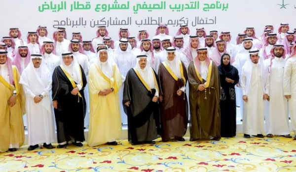 كرم صاحب السمو الملكي الأمير فيصل بن بندر بن عبدالعزيز أمير منطقة الرياض طلاب كليات المزاحمية المشاركين في التدريب الصيفي لقطار الرياض .