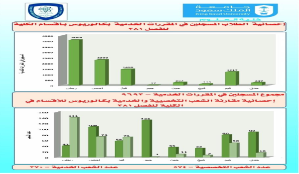 تم خلال الفترة من تاريخ 22/12/1438هـ وحتى تاريخ 1/1/1439 هـــ معالجة 1363 طلباً عن طريق برنامج «سمر»، علماً بأن متوسط إنجاز المستخدمين في الكلية هو 28 طلباً في الساعة ما بين تعليق وتحويل وإغلاق للطلب.