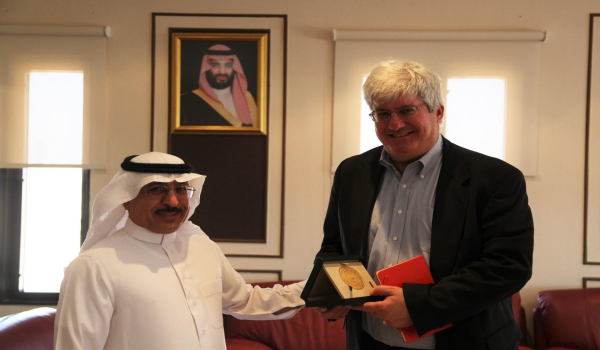 وكان في استقباله والترحيب به المشرف العام على المعهد، والذي قام بتقديم تعريف متكامل عن جامعة الملك سعود وعرض شامل في قاعة اجتماعات المعهد عن أنشطة المعهد وإنجازاته.