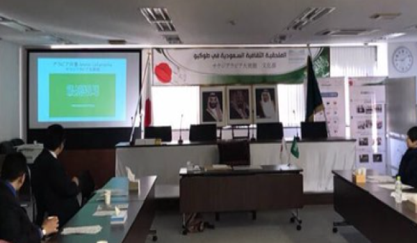 نظم نادي الطلبة السعودي في اليابان، وبإشراف من الملحق الثقافي، الدكتور خالد الفرحان، الأسبوع الماضي، ورشة عمل مقدمة للشعب الياباني، بعنوان: «تعلم فن كتابة الخط العربي»، بمقر الملحقية الثقافية في طوكيو، بمناسبة اليوم العالمي للغة العربية.