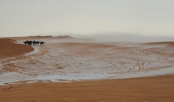 من منظر الضباب والثلوج في الصحراء
