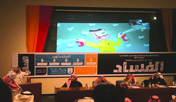 برعاية عميد كلية الآداب الدكتور نايف بن ثنيان آل سعود، أقام قسم الإعلام ندوة «دور الإعلام في مكافحة الفساد» أدارها رئيس قسم الإعلام الدكتور علي بن دبكل العنزي، وشارك فيها د. عبدالملك الشلهوب، د. سعيد الغامدي، د. عادل المكينزي والدكتور تركي العيار، وذلك في مدرج كلية الآداب.
