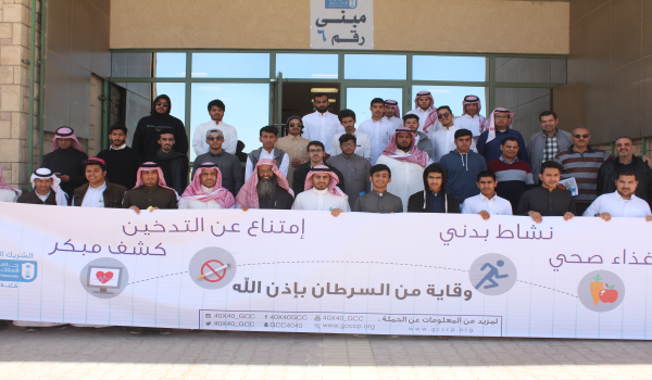 امتداداً للشراكة بين كلية المجتمع والحملة الخليجية لمكافحة السرطان، أقامت الكلية مؤخراً فعالية المشي وشارك فيها عميد كلية المجتمع الدكتور عبدالله الزهراني ومشرف الأنشطة الطلابية الدكتور سعد العتيبي وعدد من أعضاء هيئة التدريس والموظفين والطلاب، وذلك إسهاماً في رفع الوعي الصحي بضرورة وأهمية الالتزام بنمط الحياة الصحي، والذي هو من أسباب الوقاية بإذن الله من مرض السرطان.