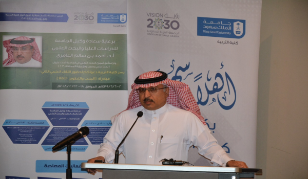 وأكد عميد كلية التربية الدكتور فهد الشايع في كلمته أن كلية التربية أطلقت مبادرتها الطموحة بتحول أدوارها لتواكب رؤية المملكة الطموحة 2030، وحددت لهذا التحول أربعة محاور رئيسة وهي «الهيكلة والحكومة، تطوير البرامج الأكاديمية، تطوير برامج الدراسات العليا والبحث التطوير». وتسعى الكلية لتحقيق ذلك من خلال شراكة فاعلة مع جميع الأطراف ذوي العلاقة سواءً داخل الجامعة أو خارجها.
