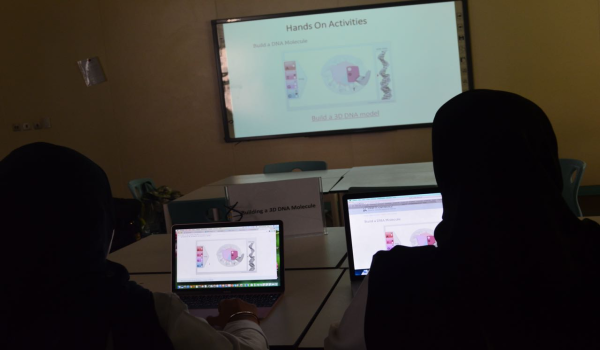 حيث قامت طالبات السنة الرابعة في كلية طب الأسنان بتطبيقات عملية على استخدامات الحمض النووي في الطب الشرعي والتعرف على طريقة قراءة الطفرة الجينية في الخلايا السرطانية ومناقشة التطبيقات العلمية لاستخدام الحمض النووي والخريطة الجينية في بحوث طب الأسنان.