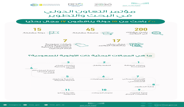 مؤتمر دولي بالرياض يناقش الأولويات البحثية للمملكة