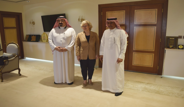 زار جامعة الملك سعود سفيرة جمهورية لاتفيا لدى المملكة السيدة أسترا كورميه، وذلك يوم الأربعاء 29/2/1440ه الموافق 7/11/2018م، وكان في استقبالها معالي مدير الجامعة الدكتور بدران العمر، و المشرف على إدارة التعاون الدولي والتوأمة العلمية العالمية الدكتور مزيد التركاوي.