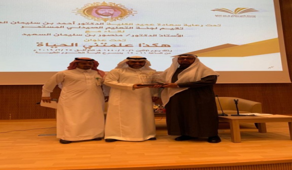 تحت رعاية عميد كلية الصيدلة الدكتور أحمد بن سليمان العليوى نظمت لجنة التعليم الصيدلي المستمر لقاء مع عميد كلية الصيدلية الأسبق ووكيل جامعة الملك سعود للدراسات العليا والبحث العلمي سابقاً، الدكتور منصور بن سليمان السعيد، تحت عنوان «هكذا علمتني الحياة»، وذلك بمسرح كلية العلوم الطبية التطبيقية بالخرج، بحضور أعضاء هيئة التدريس بكلية الصيدلة والطلاب.