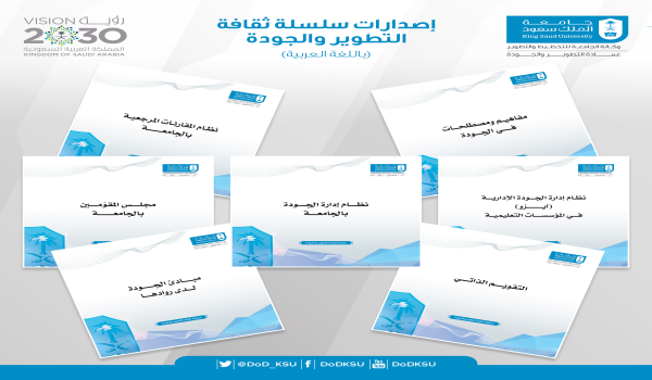 وذكر الدكتور القسومي أن الاهتمام بالجودة والاعتماد الأكاديمي قد صاحبه تجاوب من وحدات الجامعة، وهو الأمر الذي أكد أهمية استمرار دعم الحراك التطويري بالجامعة خاصة في مجال الجودة والاعتماد الأكاديمي، لذا عملت وكالة الجامعة للتخطيط والتطوير ممثلة في عمادة التطوير والجودة على إصدار سلسلة «ثقافة التطوير والجودة» وتتضمن «13» كتيباً، منها عدد «8» كتب باللغة العربية وعدد «5» كتب باللغة الإنجليزية، كما تم رفع هذه الإصدارات على الموقع الإلكتروني لعمادة التطوير والجودة، وتوزيع نسخ منها على وحدات الجامعة.