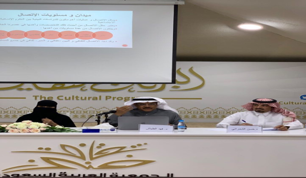 نظم الملتقى الإعلامي ندوة جديدة ضمن فعاليات البرنامج الثقافي بالشراكة مع الجمعية العربية السعودية للثقافة والفنون بعنوان «الاتصال البين ثقافي.. تنافس واستثمار في سوق عالمي» وذلك بمقر الخيمة الثقافية في جمعية الثقافة والفنون بالرياض، تحت إشراف الدكتورة أمل التميمي، وإدارة الدكتور فهد الطياش، وحضور نخبة من أعضاء هيئة التدريس بالقسم، وطلاب وطالبات البكالوريوس وعدد من المهتمين بمجال الإعلام داخل جامعة الملك سعود وخارجها.