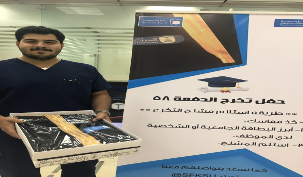 عبدالعزيز وليد الكليب، تخصص خدمات طبية طارئة، كلية الأمير سلطان بن عبدالعزيز للخدمات الطبية الطارئة، قال: شعور داخلي لا يوصف، والحمد لله على التمام والكمال، سنين مرت وكأنها لحظة، وهذه هي البداية، والقادم أفضل إن شاء الله، وبإذن الله سنخدم بلدنا على أكمل وجه، وحماسي وتشوقي للعمل الميداني وأيضًا فرحة الأهل وخاصة والدتي بشكل خاص، تنسيك تعب السنين التي مرت ولا ننسى أيضًا فرحة الأقارب وتهنئتهم لي.