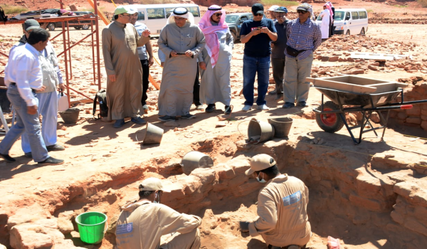 وقف معالي مدير الجامعة الدكتور بدران العمر، ووكيل الجامعة الدكتور عبدالله السلمان، والمستشار والمشرف العام على مكتب معالي مدير الجامعة الدكتور أحمد التميمي، على أعمال التنقيب والتأهيل التي تقوم بها بعثة جامعة الملك سعود في محافظة العلا.