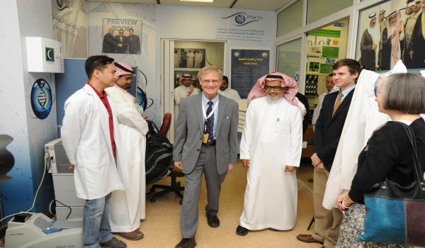زار البرفسور بيورن اولسون والبرفسور ألن بارك الحاصلان على جائزة الملك فيصل العالمية في الطب والعلوم كلية العلوم وذلك يوم الأحد الموافق 17/7/1440هـ، وكان في استقبالهم عميد كلية العلوم الدكتور ناصر بن محمد الداغري ووكلاء الكلية ورؤساء الأقسام، واطلعا خلال الزيارة على معامل أبحاث الكلية، كما تجول الدكتور بيورن أولسون في كرسي أبحاث المؤشرات الحيوية وتعرف على آخر مستجدات الأبحاث التي يقوم الكرسي بتنفيذها.