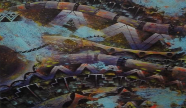 هذه اللوحة تمثل الزخارف الشعبية المتضمنة بالعمارة النجدية «المباني والأبواب» التي تميزت بالخصائص الجمالية، من أهمها البساطة واستغلال خامات البيئة، وفي هذا العمل الفني استحدثت صياغات تصميمية زخرفية مبتكرة من الزخارف الشعبية.