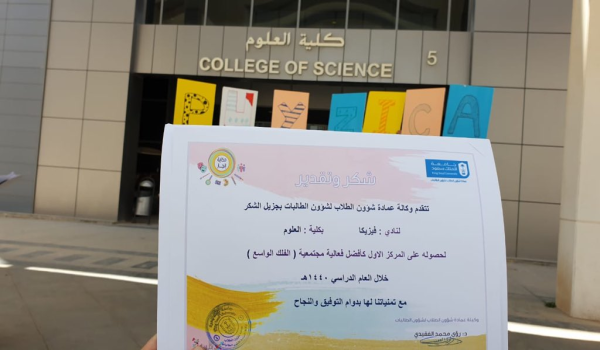 عقد قسم الفيزياء والفلك ممثلاً بنادي فيزيكا فعالية «الفلك الواسع ليلة بين النجوم» في منتزه البجيري بمدينة الرياض، هدفت الفعالية إلى رصد القمر باستخدام التلسكوب، كما احتوت الفعالية على العديد من الأركان التعليمية والترفيهية منها: ركن الفيزياء والفلك الذي اختص بالتعريف عن التخصص وشرح الارتباط بين الفيزيا والفلك، وركن «أقنعني إن الأرض كروية»، وركن «كيف تصنع تلسكوب» وهو ركن عملي يتيح الفرصة للزوار لصنع تلسكوب ومساعدتهم بالخطوات، و«ركن الواقع الافتراضي»، بالإضافة إلى المصور الفلكي بالتعاون مع كل من المصور الفلكي تركي العمري والمصور الفلكي في علم الفلك محمد الشعيل، وركن التعريف بنادي فيزيكا القائم على الفعالية، فضلًا عن ركن الرسم الذي اختص برسم الكواكب.
