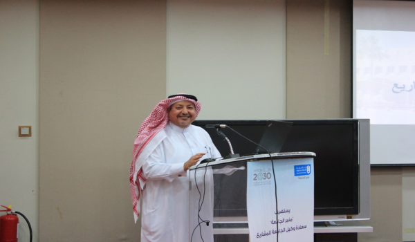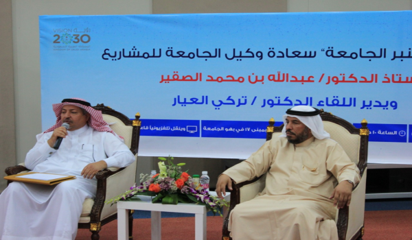 استضاف «منبر الجامعة» سعادة الدكتور عبدالله بن محمد الصقير وكيل الجامعة للمشاريع في لقاء مفتوح مع أعضاء هيئة التدريس لطرح أسئلتهم واستفساراتهم المتعلقة بوكالة المشاريع والإدارات التابعة لها، وأدار اللقاء الدكتور تركي العيار أستاذ الإعلام وذلك يوم الاثنين الماضي ١٧ محرم ١٤٤١ الموافق 16/ 9/ ٢٠١٩م من الساعة ١٠ صباحاً حتى ١٢ ظهراً في قاعة الدروازة في الدور الرابع بمبنى ١٧ في بهو الجامعة، وتم نقله لفرع الطالبات.