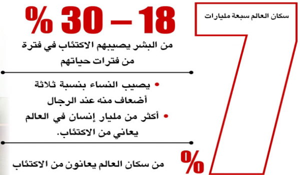 وبحسب موقع «الجمعية السعودية لطب الأسرة» فان المرض يصيب 17 في المئة من البشر في مرحلة ما من مراحل العمر، كما أن نسبة إصابة النساء تعادل ضعف ما هي عليه عند الرجال، وذكر أن السبب الفعلي للاكتئاب غير معروف. ويعتقد الأطباء أن سببه يعود إلى عدم التوازن الكيميائي في الدماغ أو تأثير الأحداث في حياة الإنسان، خصوصاً وفاة الأحياء والطلاق أو الانتقال من المسكن أو خسارة مال أو فقدان عزيز.