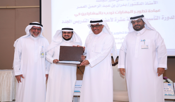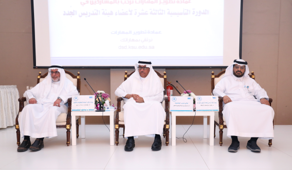 وقال سعادته: «وعلى ضوء ذلك تسعى وكالة الجامعة للتخطيط والتطوير متمثلة في عمادة تطوير المهارات للمساهمة في إعداد عضو هيئة التدريس من خلال تقديم برامج تطويرية متميزة تعنى بالتأهيل والتطوير والتدريب والتثقيف والتحسين المستمر ورفع كفاءة البحث العلمي، ويأتي برنامج أعضاء هيئة التدريس الجدد من أهم البرامج التي تنظمها الجامعة في مسار التطوير المهني، والذي يهتم بتخريج زملاء من أعضاء هيئة التدريس المتميزين، باستخدام استراتيجيات تدريسية حديثة، وبيئة تعليمية مناسبة، وبحوث علمية هادفة، ومناهج متطورة، وتقويم مستمر، واتصال جيد بالمجتمع، وتحقيق هذه المقاصد يعد تطويراً لدعائم العملية التعليمية ويقوي من قدرة جامعة الملك سعود لمواجهة التنافسية العالمية المتطورة».