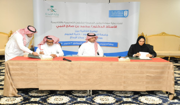 وقع الاتفاقية عميد كلية العلوم الدكتور ناصر بن محمد الداغري، نيابة عن معالي مدير الجامعة، كما وقعت الاتفاقية مدير مركز الإبداع الأستاذة نجلاء عمران كاتب نيابة عن معالي وزير الصحة.