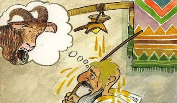 وراح يغرق في الخيال والأمنيات أكثر، فقال: وسوف أتزوج فتاة جميلة وأنجب منها عشرة أولاد ومتى كبر أولادي أحضر لهم معلمين يعلمونهم القراءة والكتابة، وآمرهم بطاعتي واحترامي، فإن لم يفعلوا ضربتهم بهذه العصا.