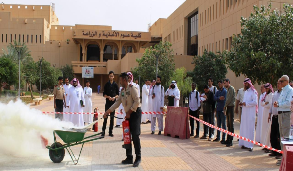 نظمت وحدة المعامل والمختبرات وإدارة المخاطر بكلية علوم الأغذية والزراعة بالتعاون مع إدارة السلامة والأمن الجامعي، ورشة عمل لتأهيل وتدريب منسوبيها على تطبيقات الأمن والسلامة لخطط الإخلاء وإطفاء الحرائق تحت عنوان (تطبيقات الأمن والسلامة لخطط الإخلاء وإطفاء الحرائق) برعاية الدكتور ناصر السحيباني عميد الكلية والدكتور فهد الجهيمي وكيل الكلية للتطوير والجودة، وذلك يوم الأربعاء 16/ 3/ 1441هـ الموافق 13/ 11/ 2019م بكلية علوم الأغذية والزراعة.