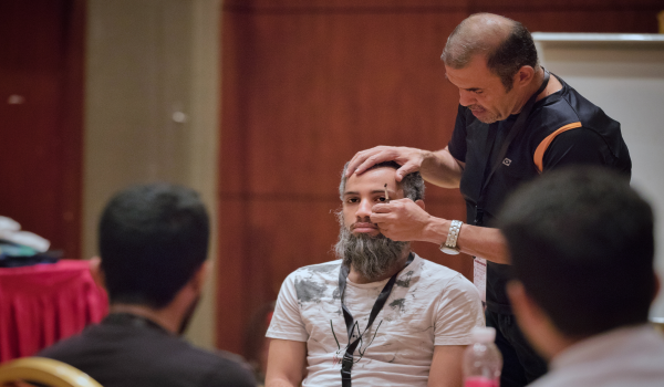 قدم الأستاذ أحمد ممدوح ورشة عمل في فن المكياج، وبدأ بمعلومات عامة حول تاريخ المكياج والتطورات المختلفة التي عرفت عن المكياج والتي تعين المتدربين على معرفة أثر المكياج في القيمة الكلية للعرض المسرحي، مع تدريبات أساسية على فنياته وطرق استخدام مواده، واختتمت الورشة بعرض نموذج واختبار لقدرات المتدربين على ما سبق في الورشة.