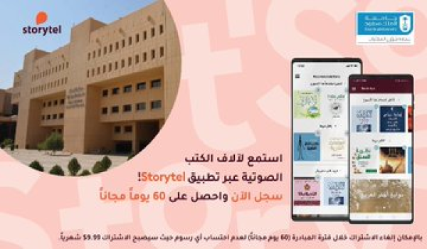 قدمت عمادة شؤون المكتبات مبادرة بالتعاون مع شركة "Storytel” لجميع منسوبي الجامعة بتوفير أكثر من 400 ألف عنوان من الكتب الصوتية باللغتين العربية والإنجليزية لمدة 60 يوماً مجاناً.