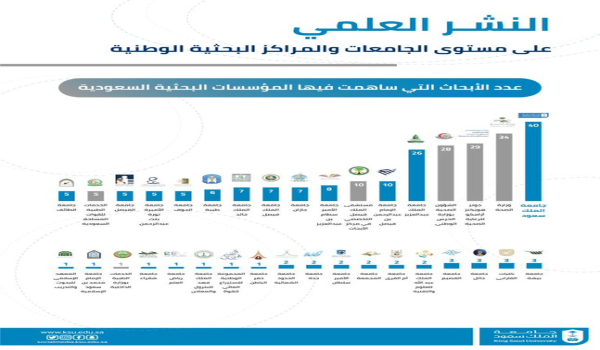تصدرت جامعة الملك سعود جامعات المملكة ومؤسساتها البحثية بمشاركتها بـ 40 بحثًا علميًا حول فيروس كورونا المستجد، لتكون أبرز المساهمين في تحقيق المملكة للمركز الأول عربيًا و25 عالمياً في الإنتاج البحثي العلمي المتعلق بالجائحة.