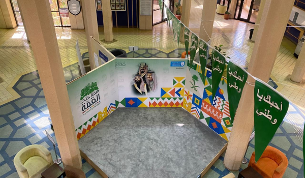 ونظم شطر الطالبات بالمركز بالتعاون مع العلاقات العامة في كلية الآداب شطر الطالبات؛ عدة فعاليات تضمنت عرض منشورات المركز المعنية بتاريخ الجزيرة العربية وحضارتها، وأنشطة عبَّرت عن اهتمام الطالبات والمنسوبين بهذه المناسبة السعيدة، وعن اعتزازهن بالقيادة الحكيمة والحضارية لخادم الحرمين الشريفين الملك سلمان بن عبدالعزيز آل سعود، وولي عهده الأمين صاحب السمو الملكي الأمير محمد بن سلمان، يحفظهم الله.