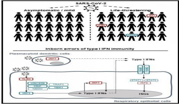 وأضاف أن الدراسة شملت 659 مريضًا مصابًا بحالات شديدة بفيروس كورونا المستجد، وضمت 534 مريضًا مصابًا بحالات خفيفة بالفيروس للمقارنة، وبناء على دراسات سابقة للمجموعة البحثية نفسها لمعرفة طريقة استجابة جهاز المناعة لمختلف الفيروسات تمت دراسة التسلسل الوراثي للمرضى المصابين بالحالات الخطرة عن طريقة استجابة الجسم المناعي لمركبات الإنترفيرون.