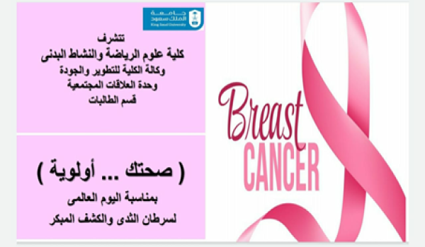 بمناسبة اليوم العالمي لسرطان الثدي وبرعاية عميد كلية علوم الرياضة والنشاط البدني الدكتور سليمان الجلعود، نظمت وحدة العلاقات المجتمعية بوكالة الكلية للتطوير والجودة ندوة عن بعد بعنوان «صحتك أولوية».