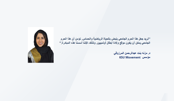الدكتورة مزنة المرزوقي، مؤسس المبادرة، أوضحت أن مبادرة «KSU Movement» تفخر وتسعد بدعم الحملة الوطنية للتوعية بسرطان الثدي ٢٠٢٠ #العفو_والعافية كشريك رياضي للحملة وإطلاق #تحدي_العافيه الرياضي الافتراضي الخيري بالتعاون مع الاتحاد السعودي للرياضة للجميع والاتحاد السعودي للرياضات الإلكترونية والذهنية في مبادرة «تحرك والعب».