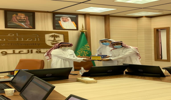 وفي نهاية الاجتماع قدم الدكتور ناصر الداغري عميد كلية العلوم درع الكلية تقديرا للدعم المستمر للنشاط البحثي في كلية العلوم.