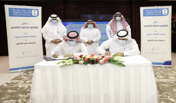 وقع وكيل الجامعة للشؤون التعليمية والأكاديمية الدكتور محمد النمي، ورئيس جامعة حفر الباطن الدكتور صالح آل صقر، مذكرة تفاهم تهدف إلى تنفيذ جامعة الملك سعود مبادرات في مجال إعداد وتقييم وتحكيم البرامج الأكاديمية لجامعة حفر الباطن، وتبادل أعضاء الهيئة التدريسية، والتعاون في مجال التدريب وتنمية الموارد البشرية.