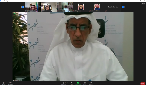 نيابة عن معالي رئيس الجامعة الدكتور بدران العمر، كرم وكيل الجامعة للشؤون التعليمية والأكاديمية الدكتور محمد النمي، الطلاب والطالبات المتفوقين للعام الدراسي 1440/1441هـ في حفل نظمته عمادة شؤون الطلاب يوم الأربعاء 24/ 4/ 1442هـ عبر منصة زووم «عن بعد»، حيث بدأ الحفل بآيات من الذكر الحكيم، وألقى عميد شؤون الطلاب د. فهد القريني كلمته التي استهلها بالترحيب بوكيل الجامعة للشؤون التعليمية والأكاديمية الدكتور محمد النمي، ووكيلة الجامعة لشؤون الطالبات، وعمداء الكليات، ووكلاء عمادة شؤون الطلاب.