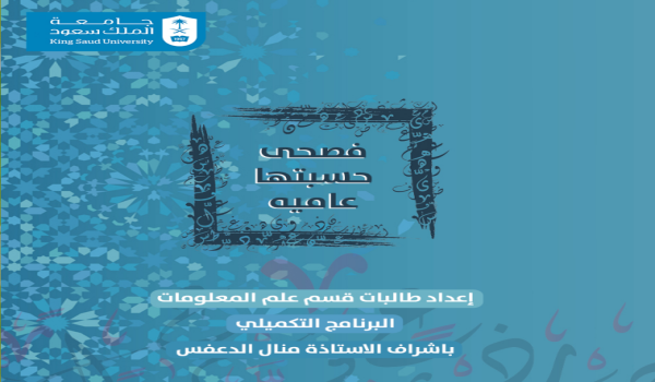 بالتزامن مع اليوم العالمي للغة العربية الذي يصادف 18 ديسمبر من كل عام، أصدرت طالبات قسم علم المعلومات «البرنامج التكميلي» كتيباً بعنوان «فصحى حسبتها عامية» وذلك بإشراف الأستاذة منال الدعفس، وتم في هذا الكتيب ذكر 49 كلمة يظنها البعض عامية بينما هي فصحى.