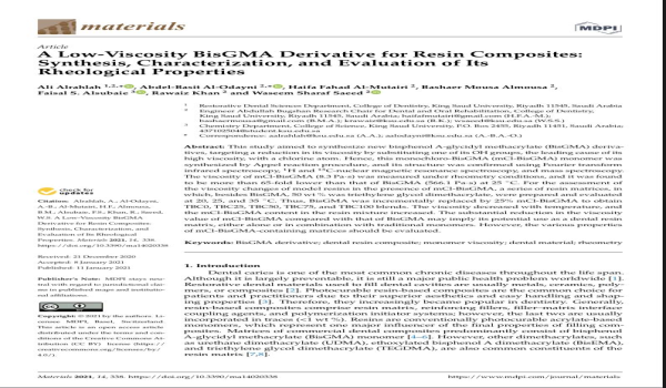 اهتم البحث بتطوير إحدى أهم المواد الأولية والأساسية المعروفة حالياً في صنع حشوات الأسنان الراتنجية والمعروفة اختصارا بـ «BisGMA»؛ هذه المادة تمتلك خواص مرغوبة جداً، ولكن لزوجتها العالية تعيق إضافة الكمية الكافية من المواد المقوية للحشوة مثل السليكا.
