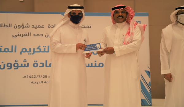 أقيم الحفل في قاعة الدرعية بالجامعة، بحضور عميد شؤون الطلاب الدكتور فهد القريني، والدكتور سعود العمري وكيل العمادة للخدمات الطلابية، والدكتور حسين الحكمي وكيل العمادة للتطوير والجودة، والدكتور علي الدلبحي وكيل العمادة للأنشطة والشراكة الطلابية مع التقيد بكافة الإجراءات الاحترازية.