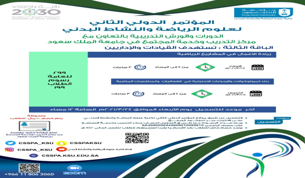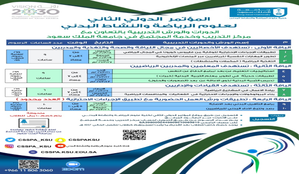 يذكر أن كلية علوم الرياضة والنشاط البدني تعتزم تنظيم مؤتمر «مستقبل الرياضة خلال الأوبئة والأزمات» خلال الفترة 30 - 31 مارس 2021م، وسبقته مجموعة من الندوات وورش العمل والدورات التدريبية.